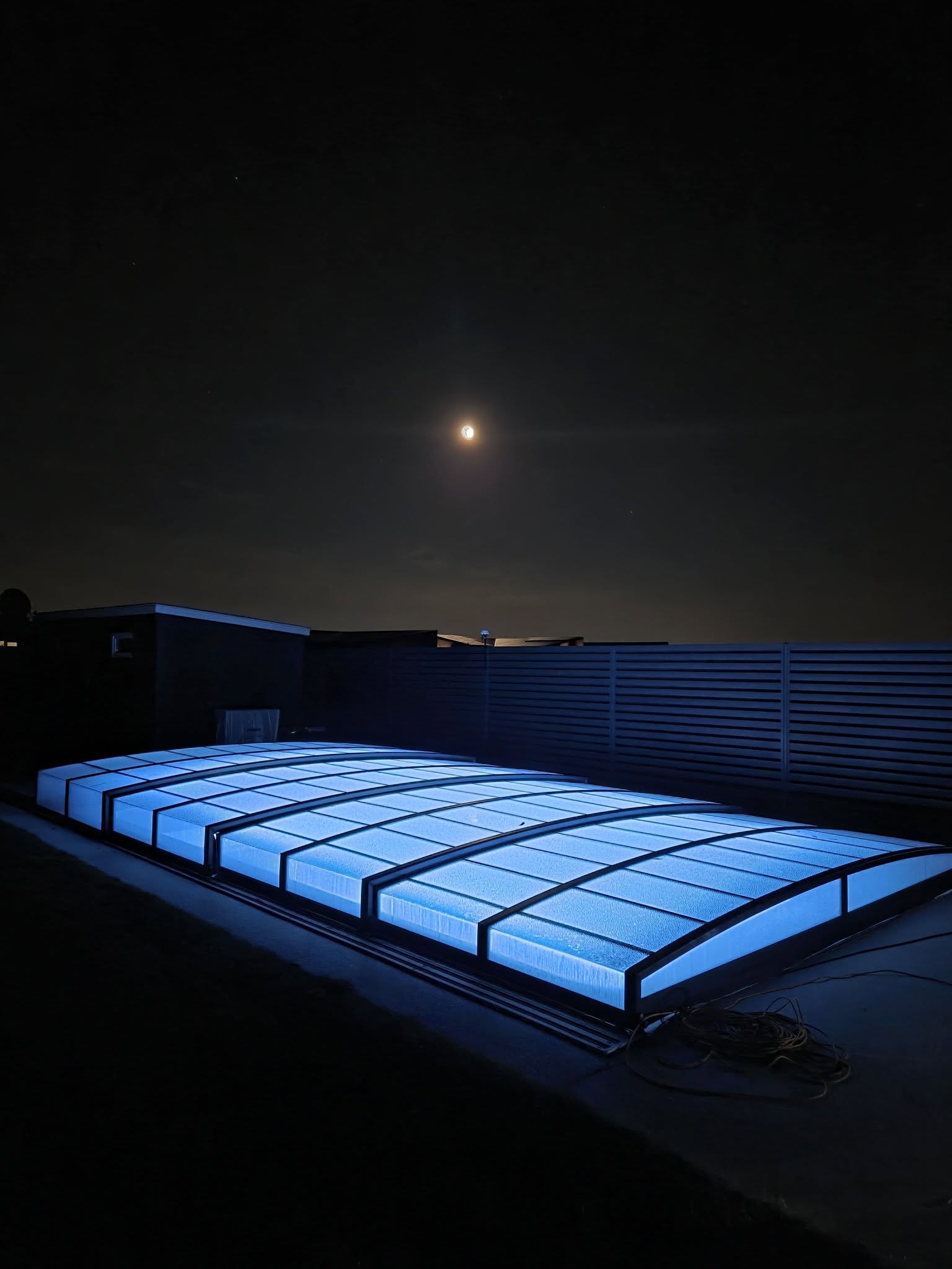 Kad vanduo baseine ilgiau išlaikytų šilumą, naudojama uždengimo plėvelė arba baseino gaubtas.