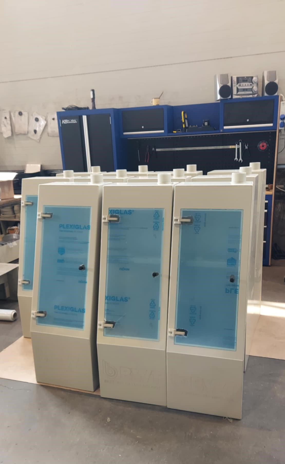 Gaminame įvairių dydžių technines spintas chemijos, dujų ir vandens pramonei.